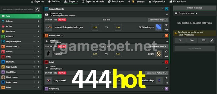 A aposta 444hot oferece aos jogadores a experiência mais conveniente de apostas em eSports!